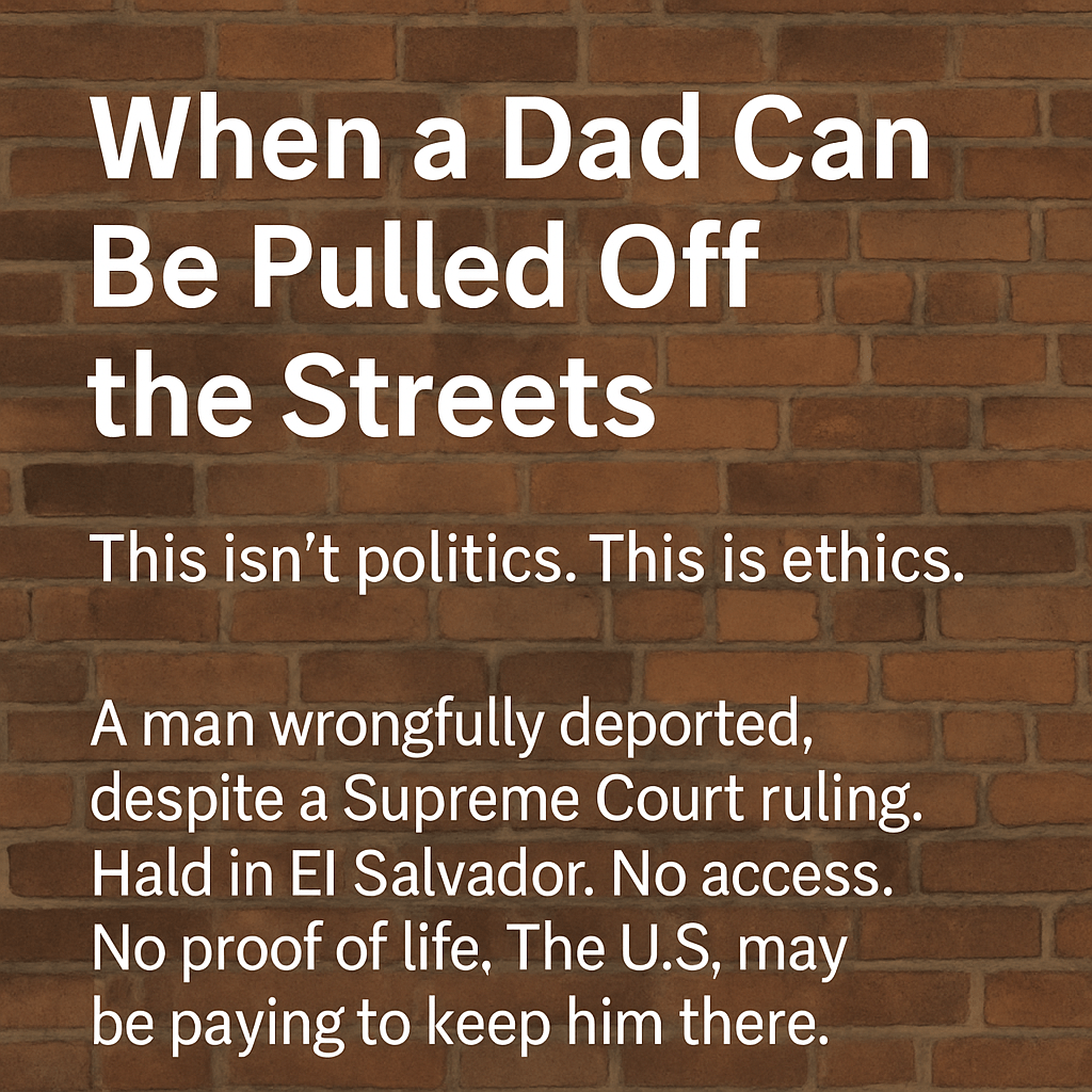Kilmar Abrego Garcia was doing what we’re always told to do: playing by the rules. He lived in Maryland, raised a family, paid taxes, and trusted in the idea that if you followed the system, the system would hold you. That it would protect—not punish—you for trying to build a life.
